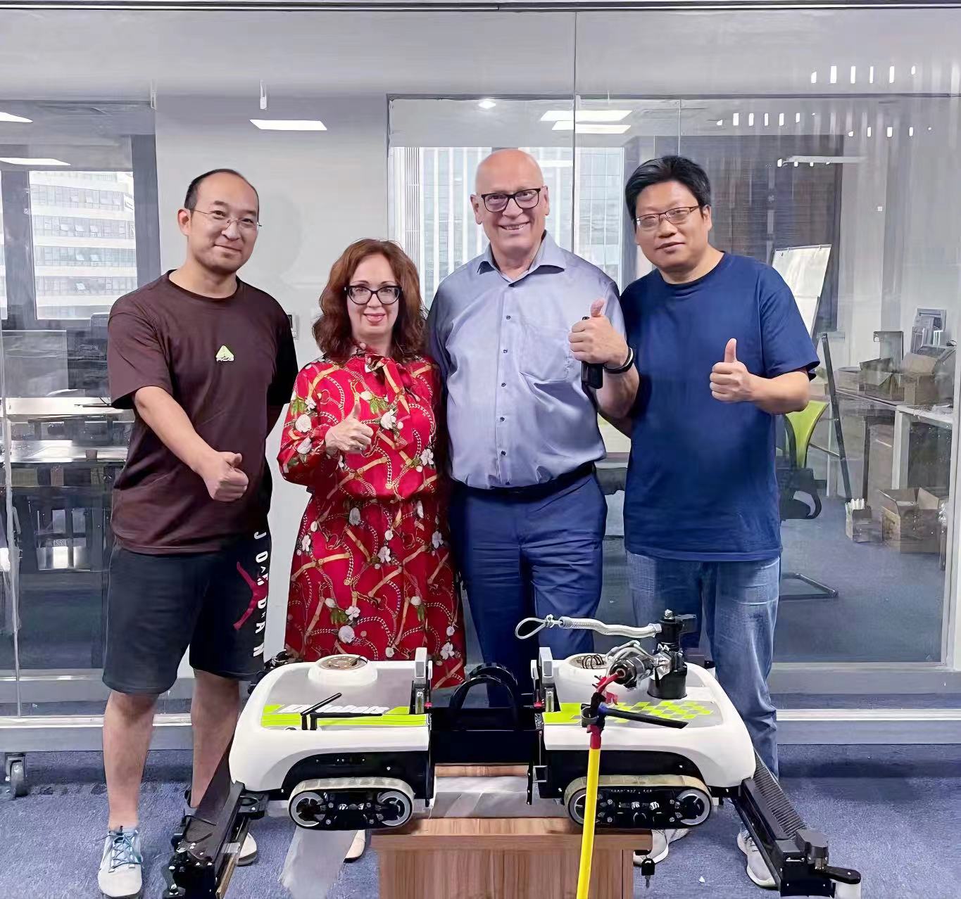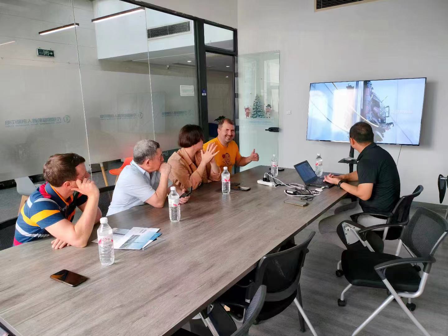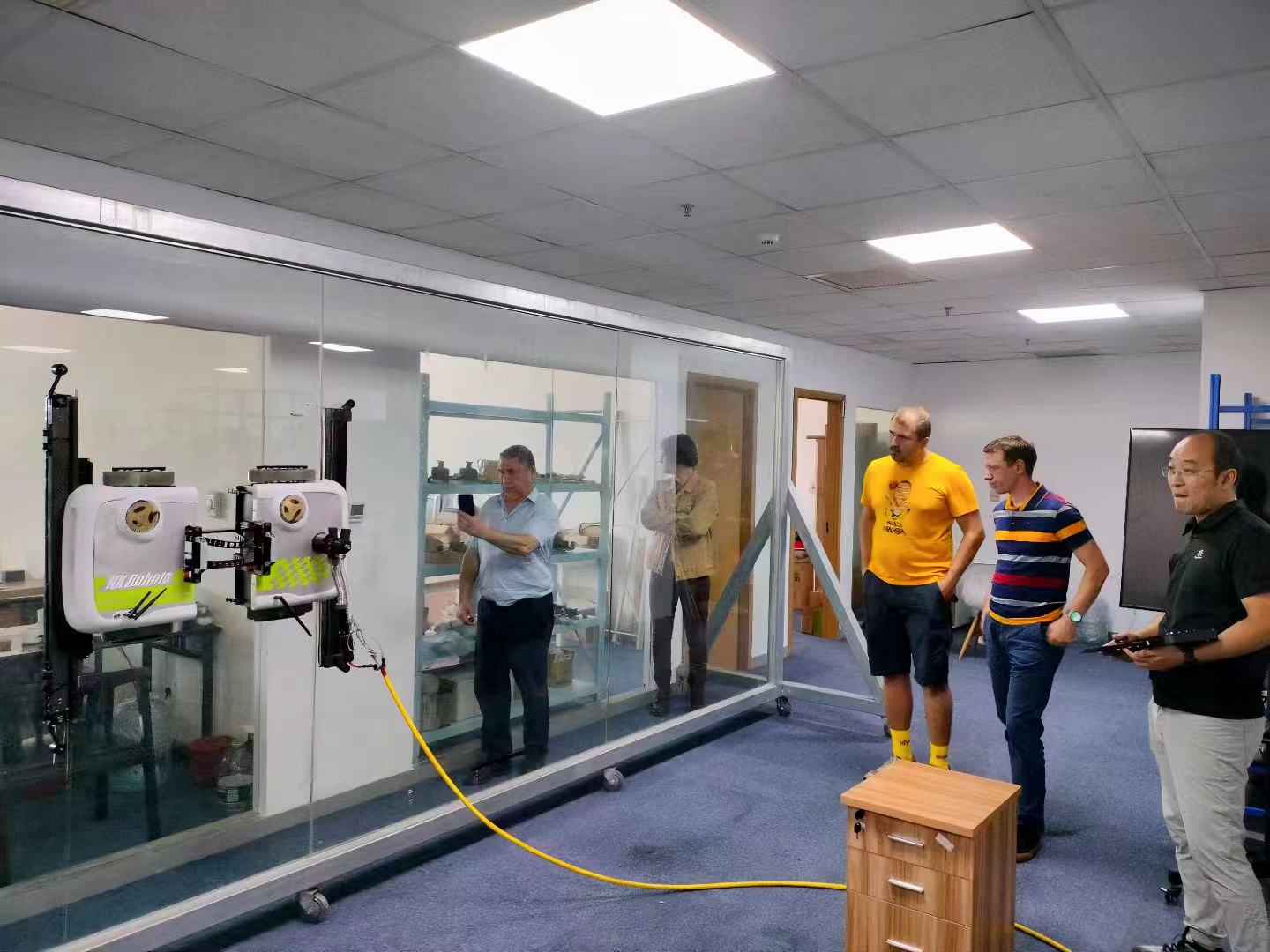 洽談初始,秦部長講述了申錫集團三十五年來的歷史沿革、資質(zhì)榮譽、主要成就。交流過程中秦部長也介紹了公司的主要產(chǎn)品,包括吊籃、升降平臺、工業(yè)梯、擦窗機器人等等,外商們感受到了申錫從無到有,多層次、多維度發(fā)展的景深。