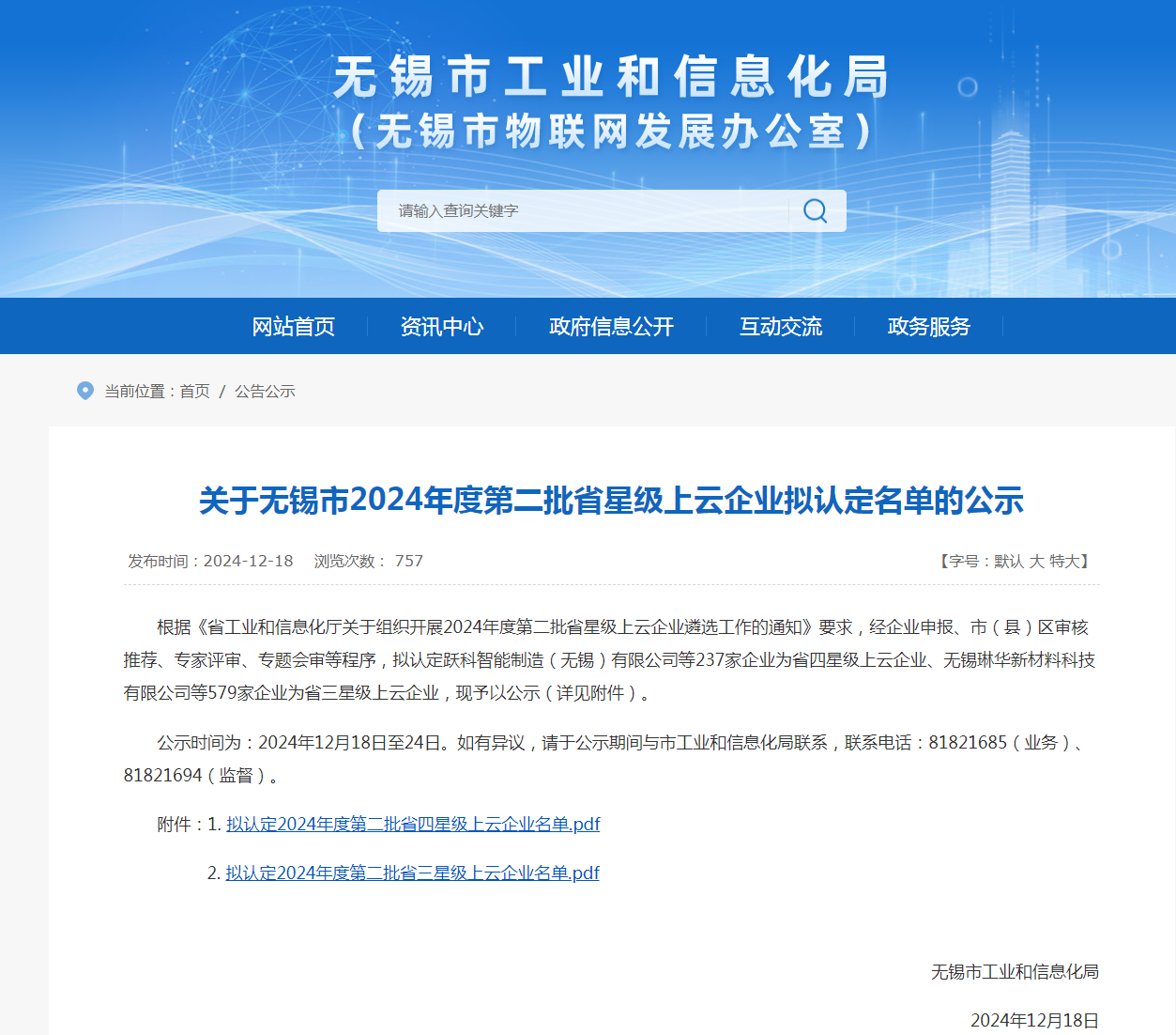 昨日無(wú)錫市工業(yè)和信息化局網(wǎng)站公示了