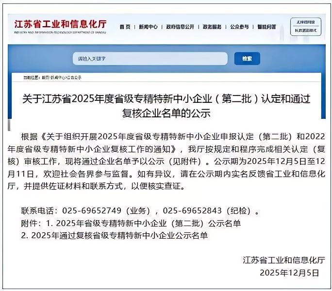 近日,江蘇省工業(yè)和信息化廳發(fā)布了《關(guān)于江蘇省2025年度省級(jí)專精特新中小企業(yè)(第二批)認(rèn)定和通過(guò)復(fù)核企業(yè)名單的公示》,申錫機(jī)械集團(tuán)有限公司順利通過(guò)復(fù)核,其在技術(shù)創(chuàng)新、市場(chǎng)拓展與產(chǎn)業(yè)突破等方面的綜合實(shí)力再度獲得權(quán)威認(rèn)可。